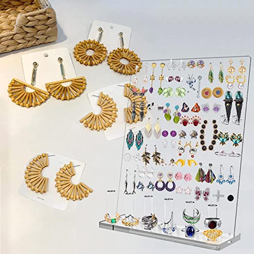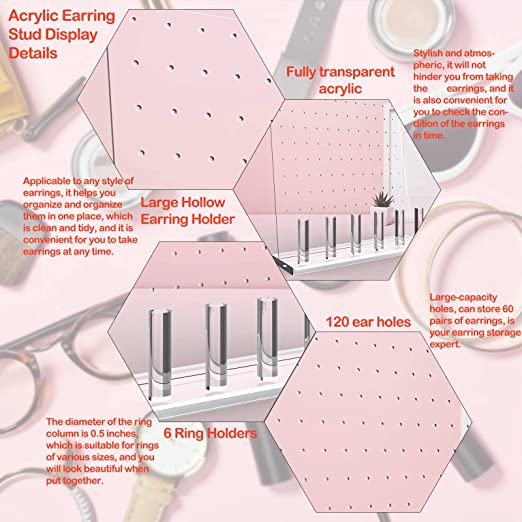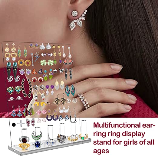 FANASSYY Clear Earring Display Stand Earrings Organizer 66 Holes 3-layered Ear Stud Holder Jewelry Display Stands