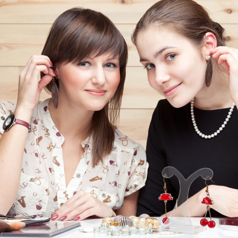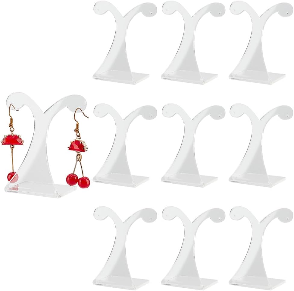 FANASSYY 10pcs Earring Display Stand, Acrylic Slant Back Ear Studs Holder Jewelry Organizer Stands Dangle Earring Display Rack for Selling Earrings Merchant Show Retail Photo Props (Clear)