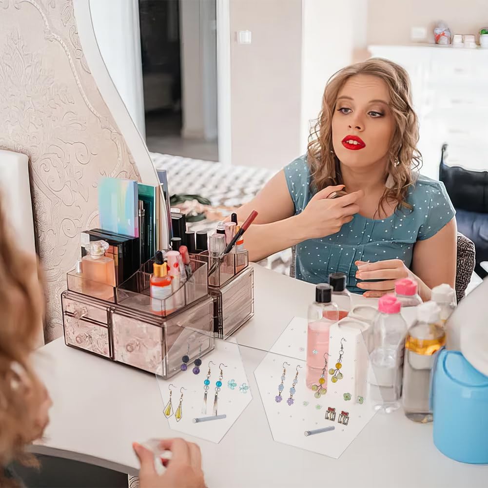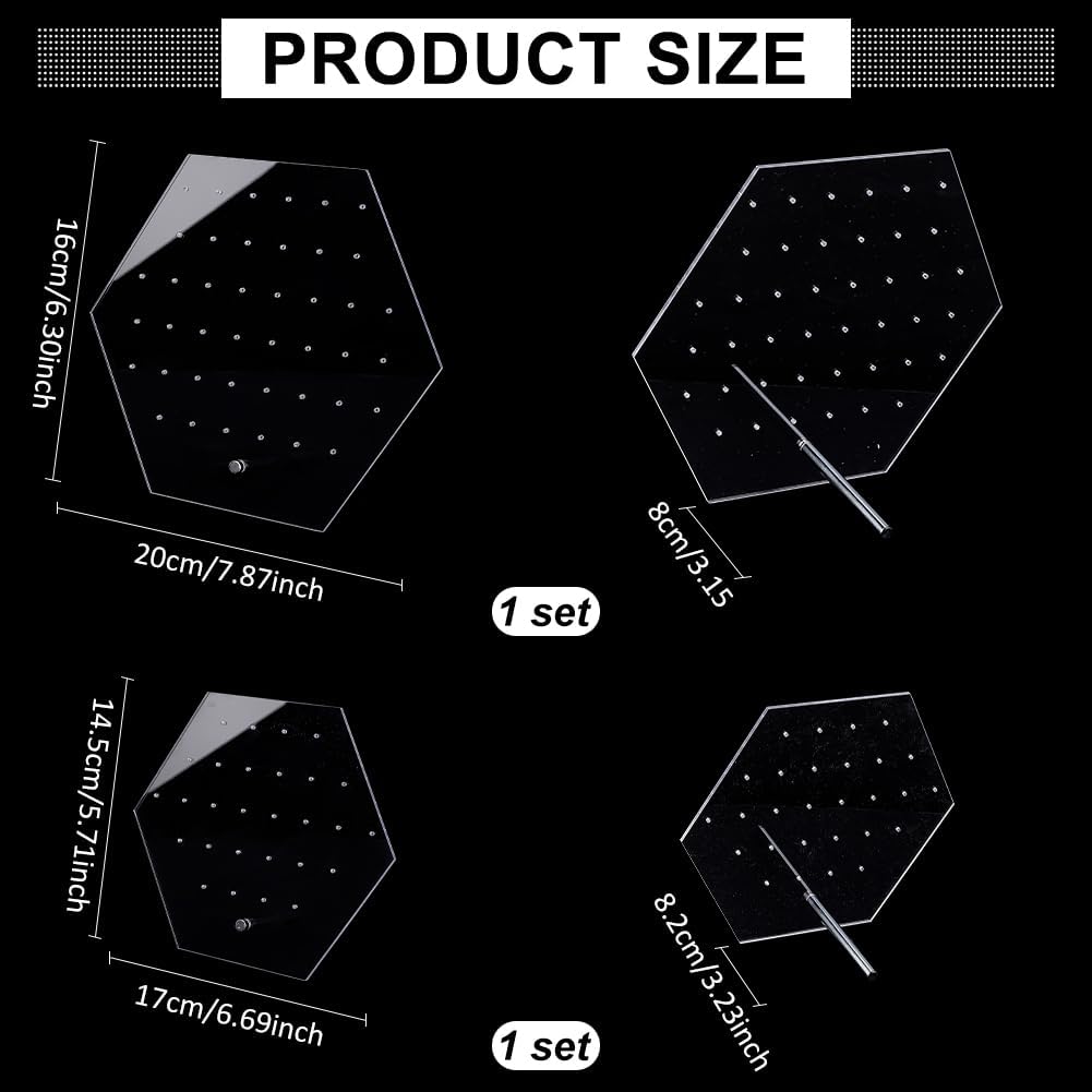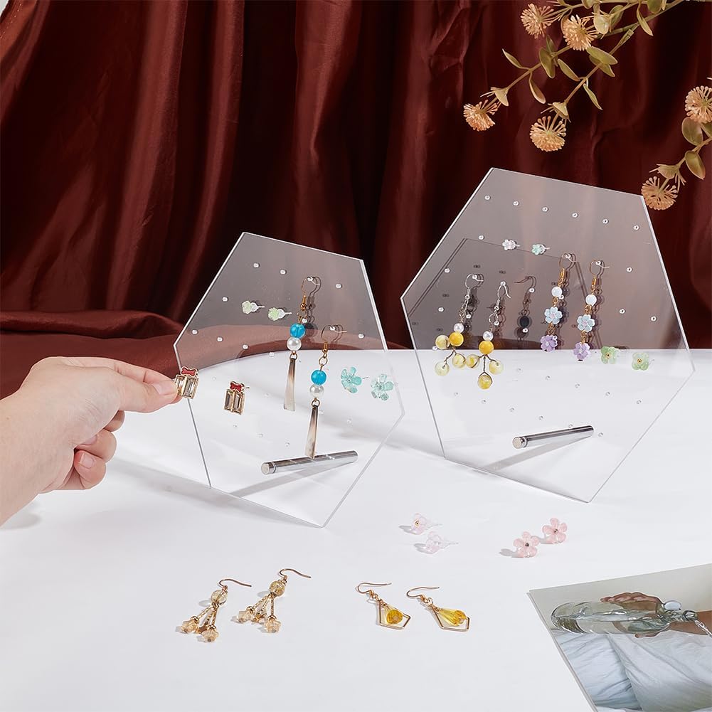 FANASSYY 2 Sizes Earring Display Stands, Clear Acrylic Earring Display Holders 70 Holes Hexagonal Earring Organizer Stands Ear Studs Holders for Storage Showcase Retail Selling Marketing (PACK OF 2)