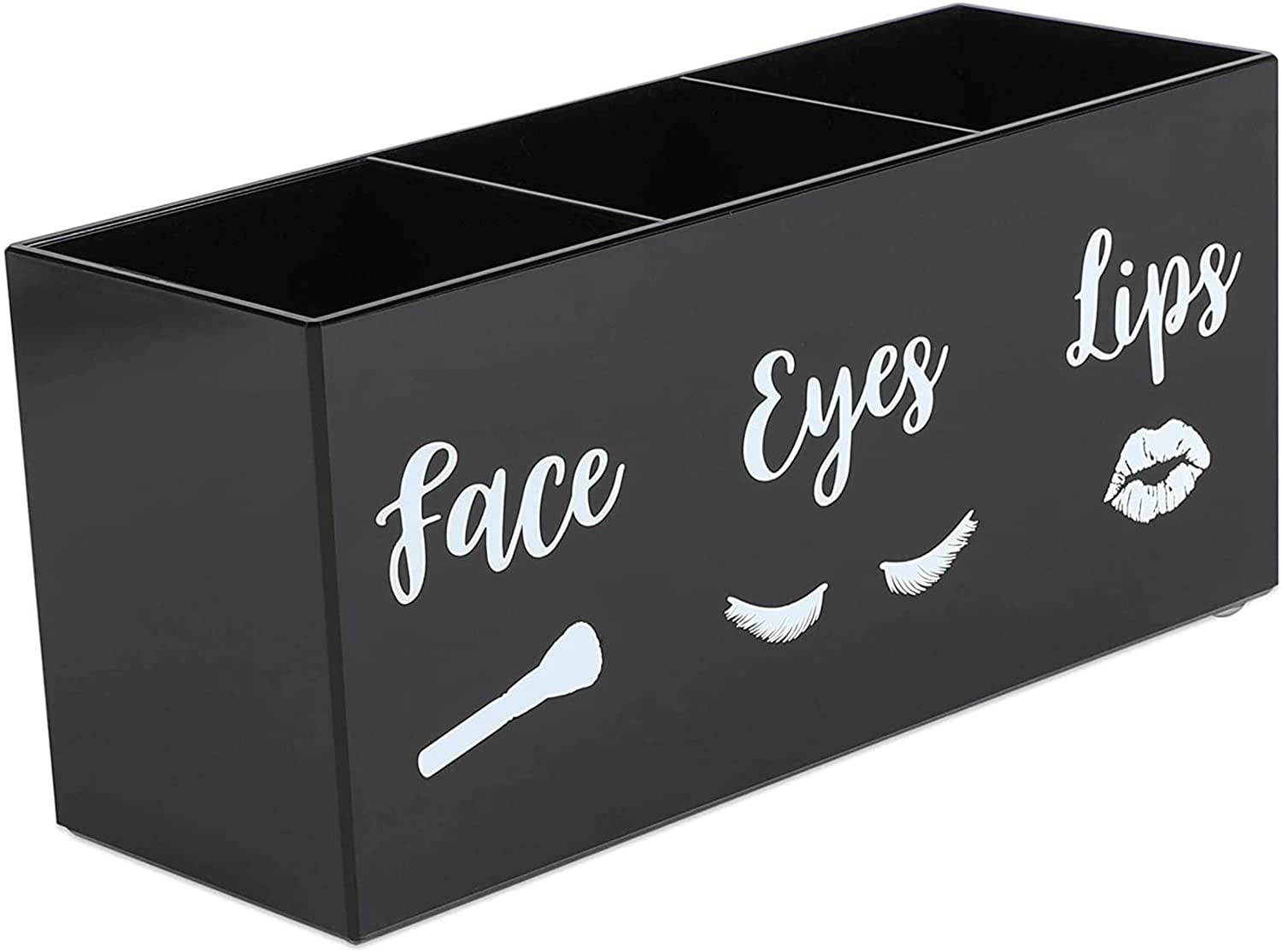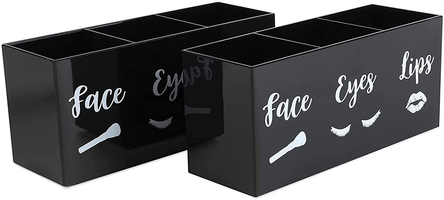 FANASSYY 3-Slot Acrylic Makeup Brush Holder – Black & White Cosmetic Brush Organizer for Vanity Countertop | Face, Eyes & Lips Makeup Brushes Storage