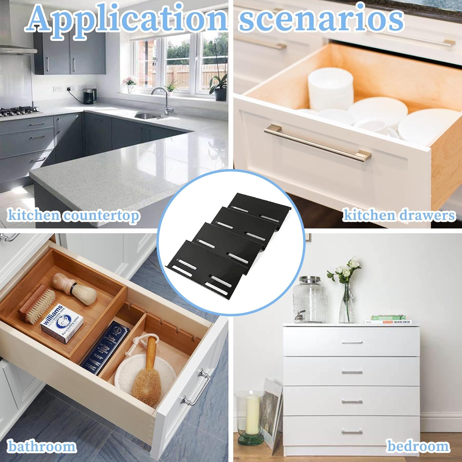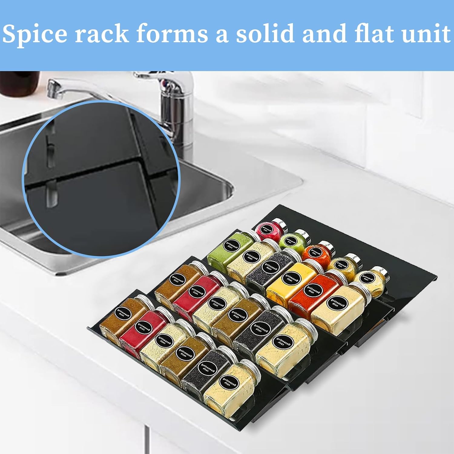 FANASSYY 4Pcs Black Acrylic Spice Drawer Organizer Seasoning Jars Drawers Insert Kitchen Spice Rack Tray for Drawer Spice Drawer Organizer Drawer Organizer Cabinet Countertop