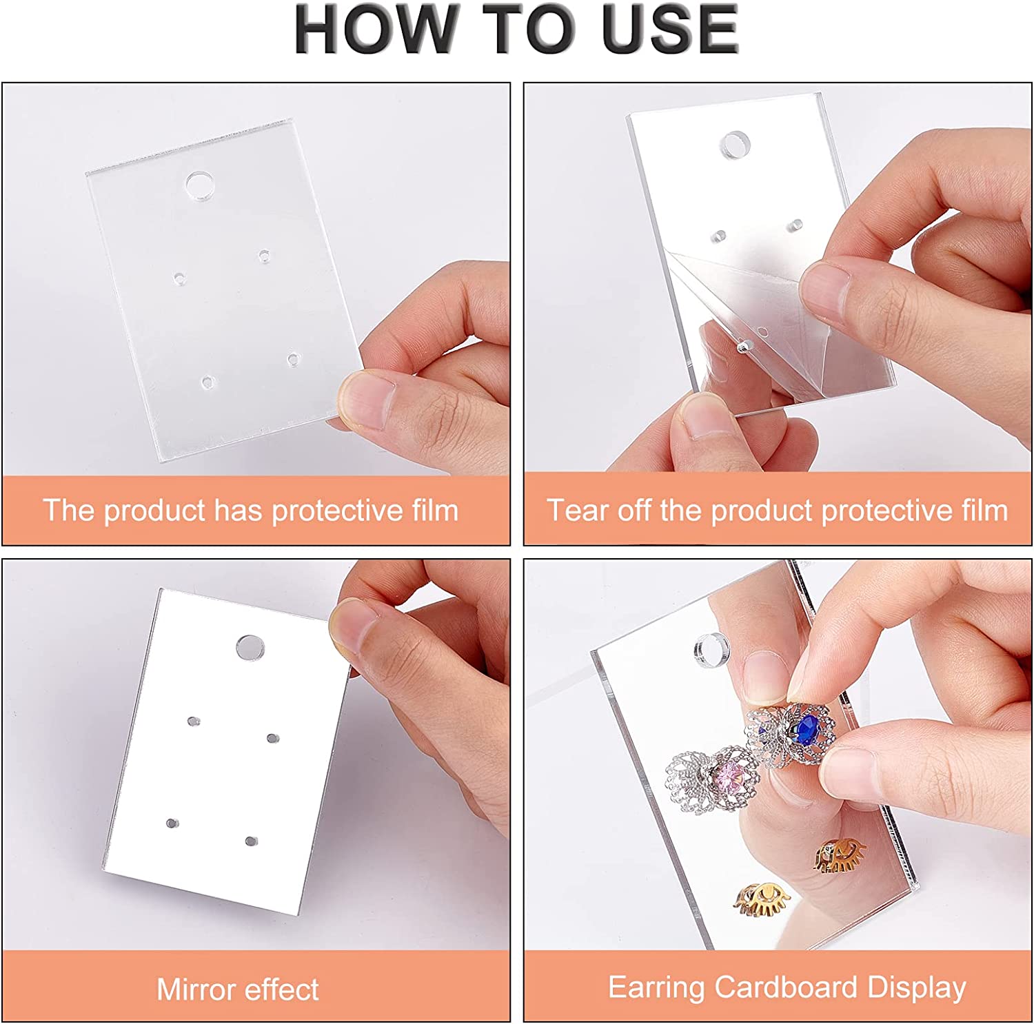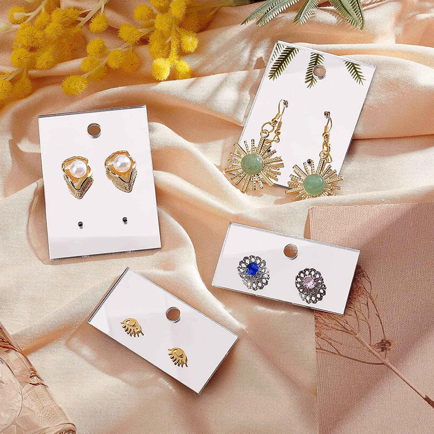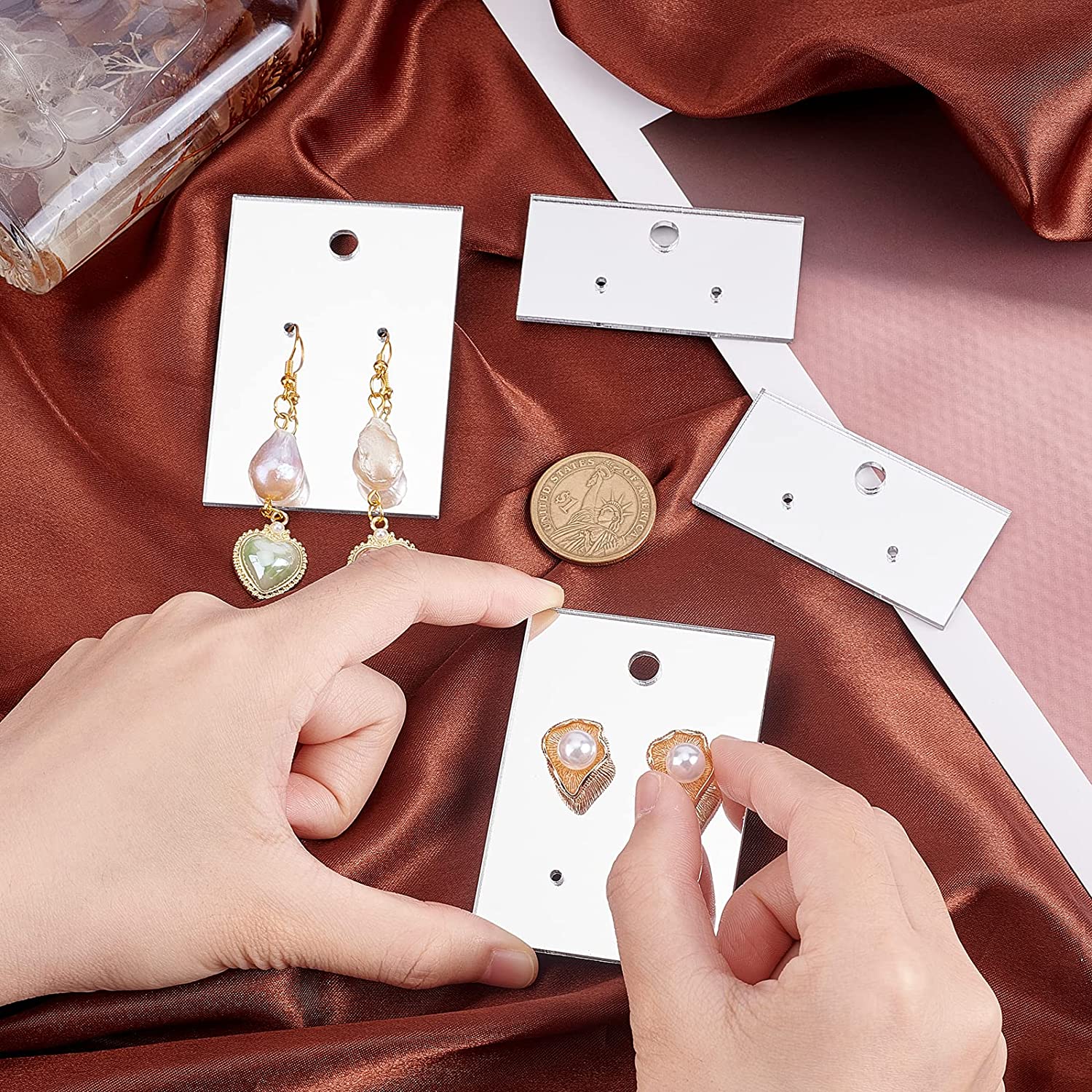 FANASSYY 5pcs Mirror Effect Hanging Earring Cards, 2 Style Acrylic Earring Display Cards for Ear Studs, Gray Earring Card Holder for Jewelry Accessory Display Supplies (Silver Mirror)