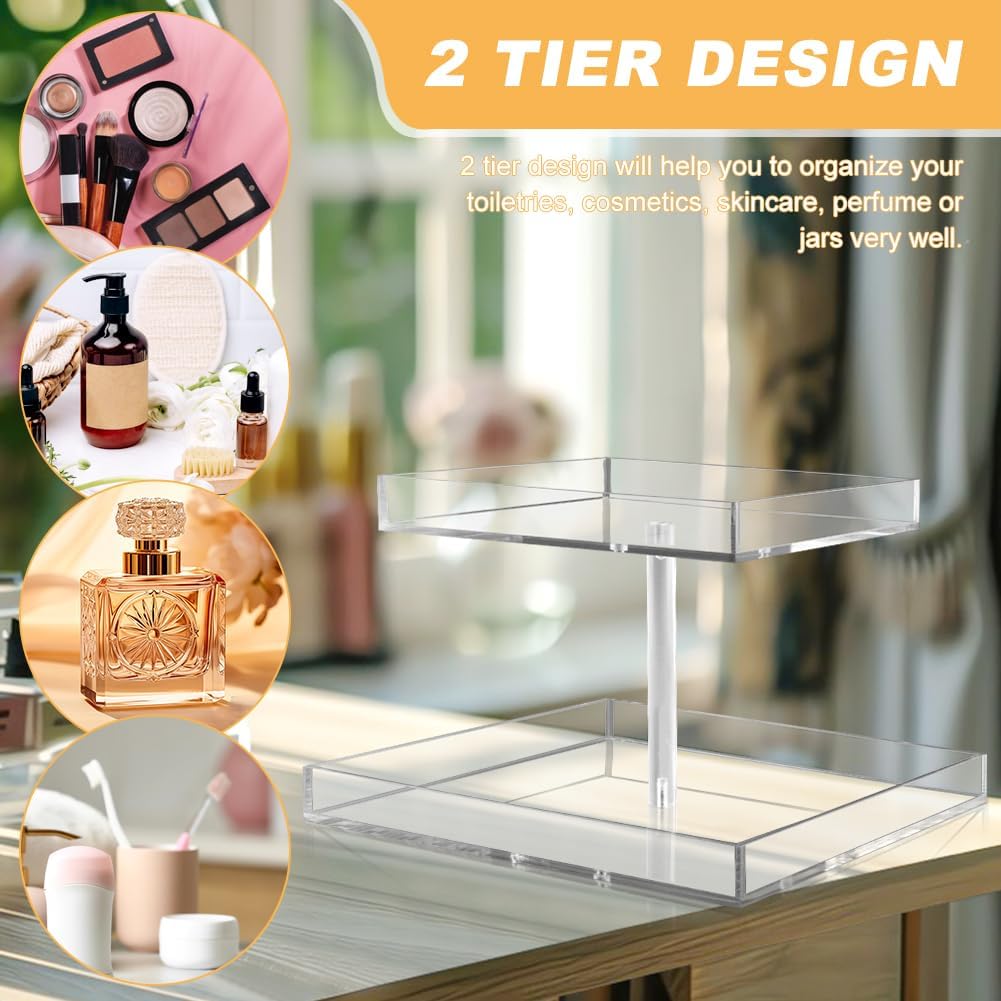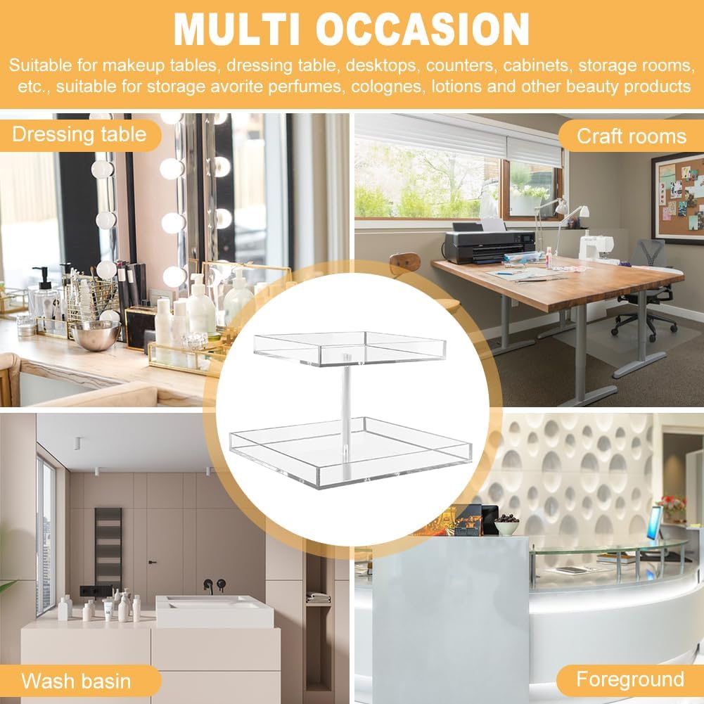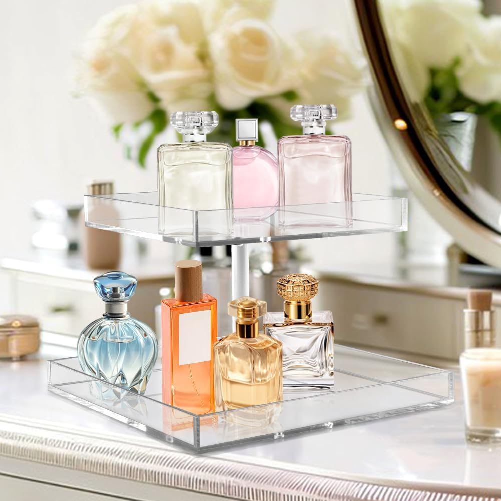 FANASSYY Acrylic 2-Tier Cosmetic Storage Display Perfume Organizer Tray, Cake Stands Jewelry Skincare Display Holder