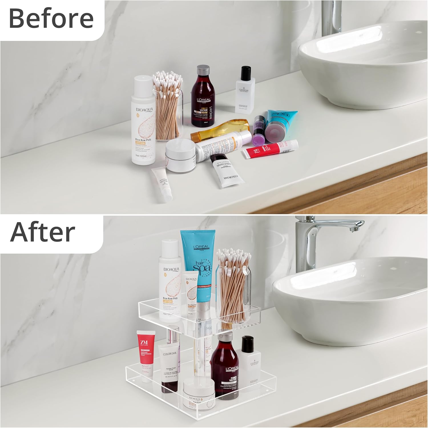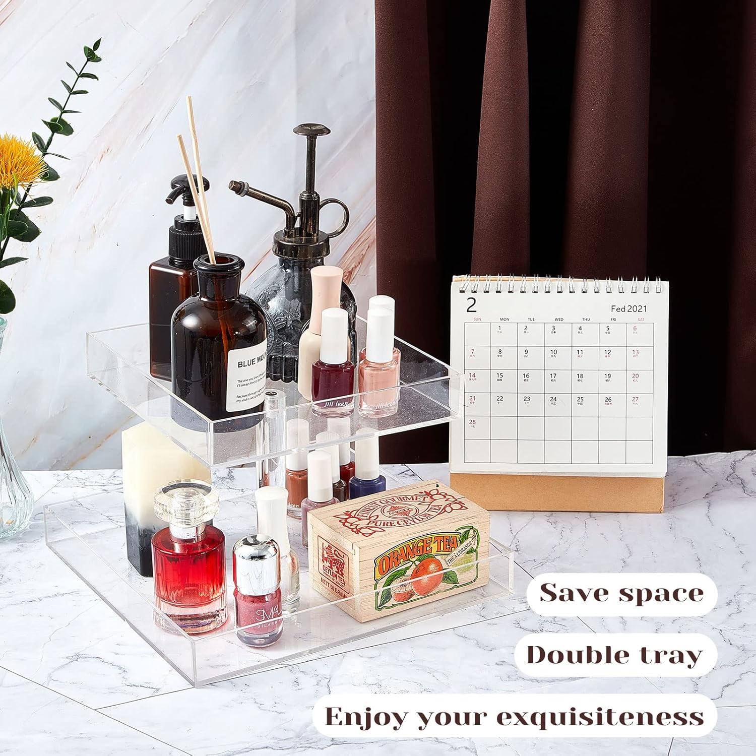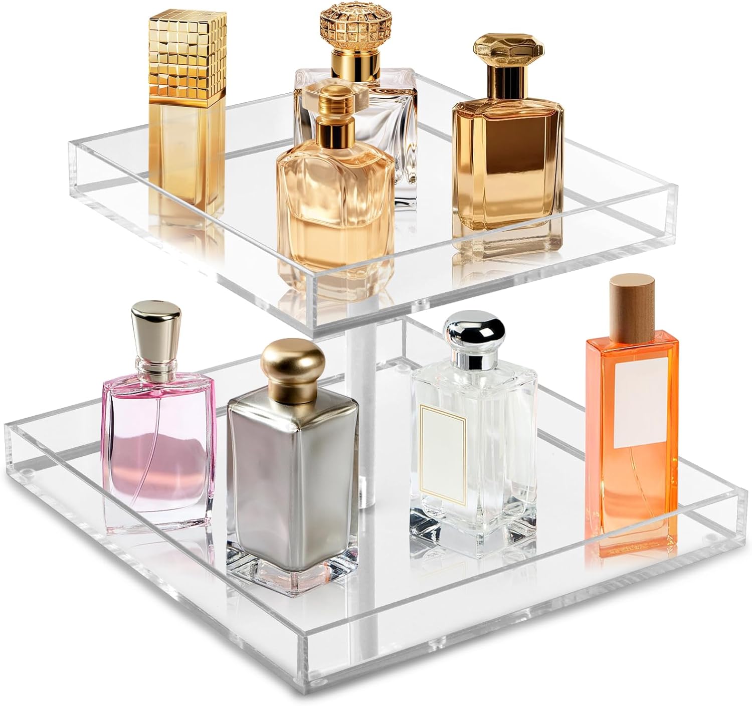 FANASSYY Acrylic 2-Tier Cosmetic Storage Display Perfume Organizer Tray, Cake Stands Jewelry Skincare Display Holder
