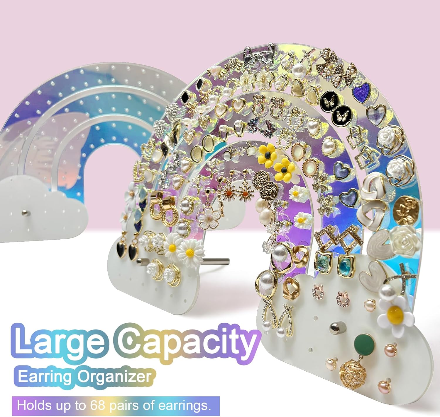 FANASSYY Acrylic Earring Stand, Multifunctional Jewelry Organizer with Dedicated Necklace, Bracelet, Ring, Earring, Stud Sections Earrings ring holder