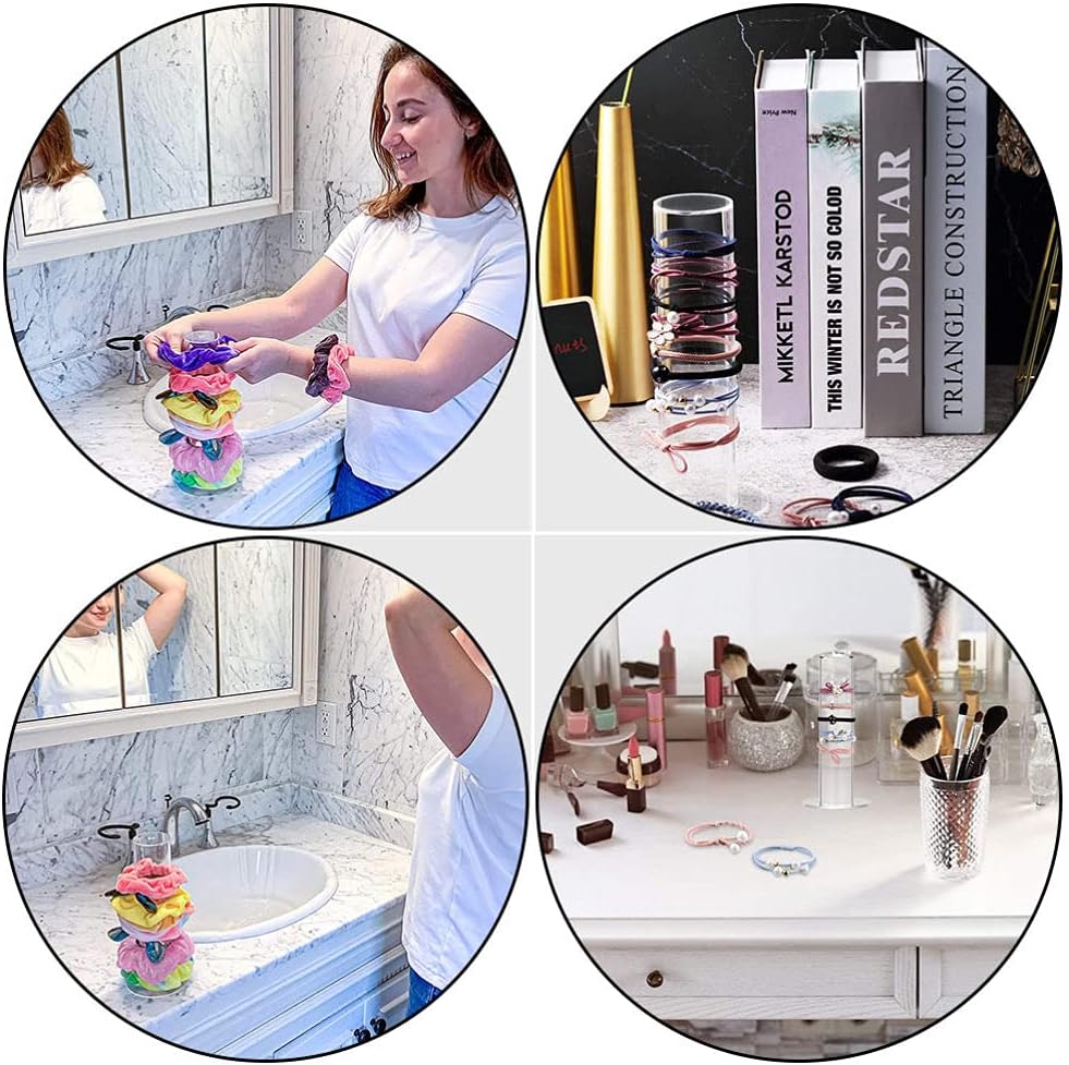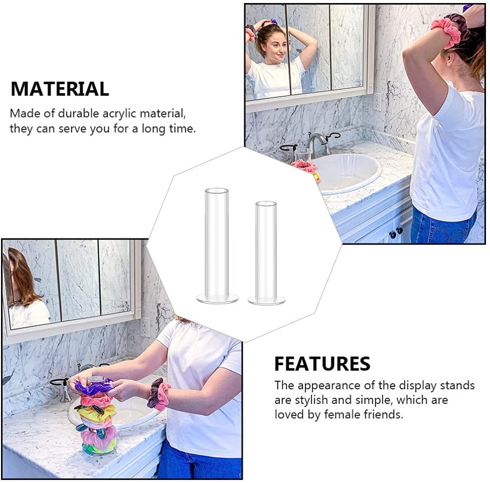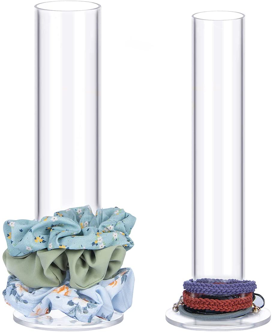 FANASSYY Acrylic Jewelry & Scrunchie Holder Stand – Clear Cylinder Display Organizer for Bracelets, Watches, Hair Ties & Accessories (Set of 2)