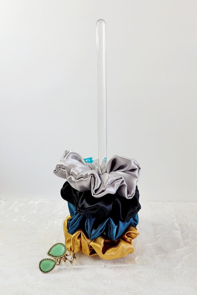 FANASSYY Acrylic Scrunchies and Headband Holder Stand – Clear Hair Clip & Hair Bow Organizer Display for Girls and Women – Hanging Storage for Bedroom, Bathroom, or Vanity