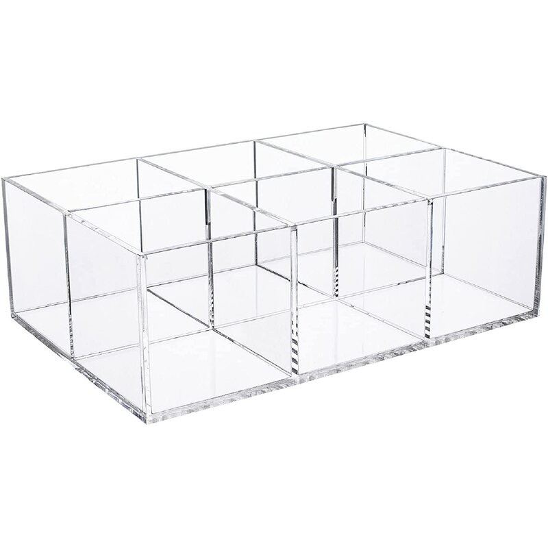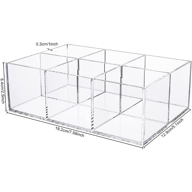 FANASSYY Clear Acrylic Bathroom & Vanity Drawer Organizer – 6-Compartment Makeup Brush Holder, Stationery Storage for Desk, Pen & Pencil Holder | Compact Storage Bin