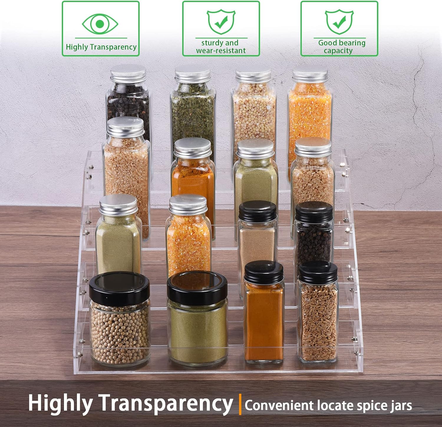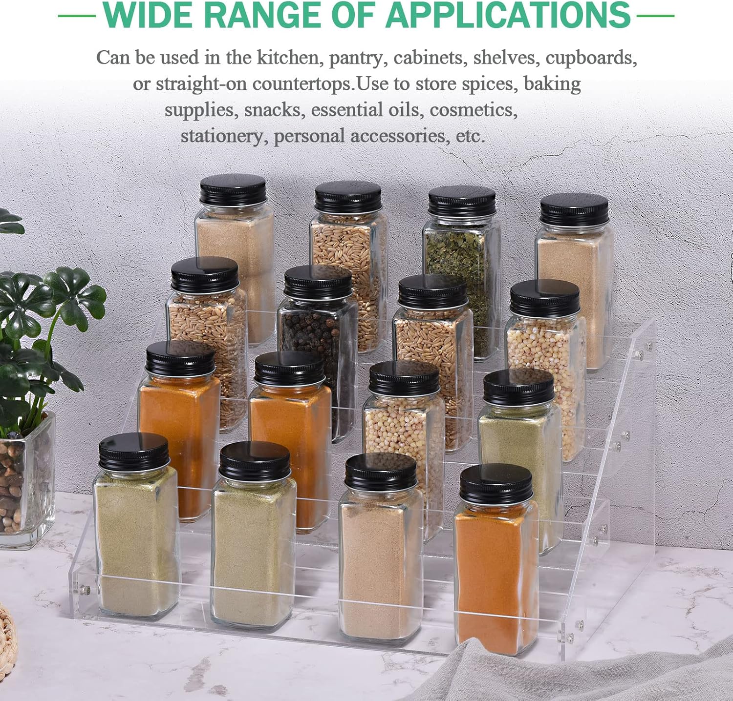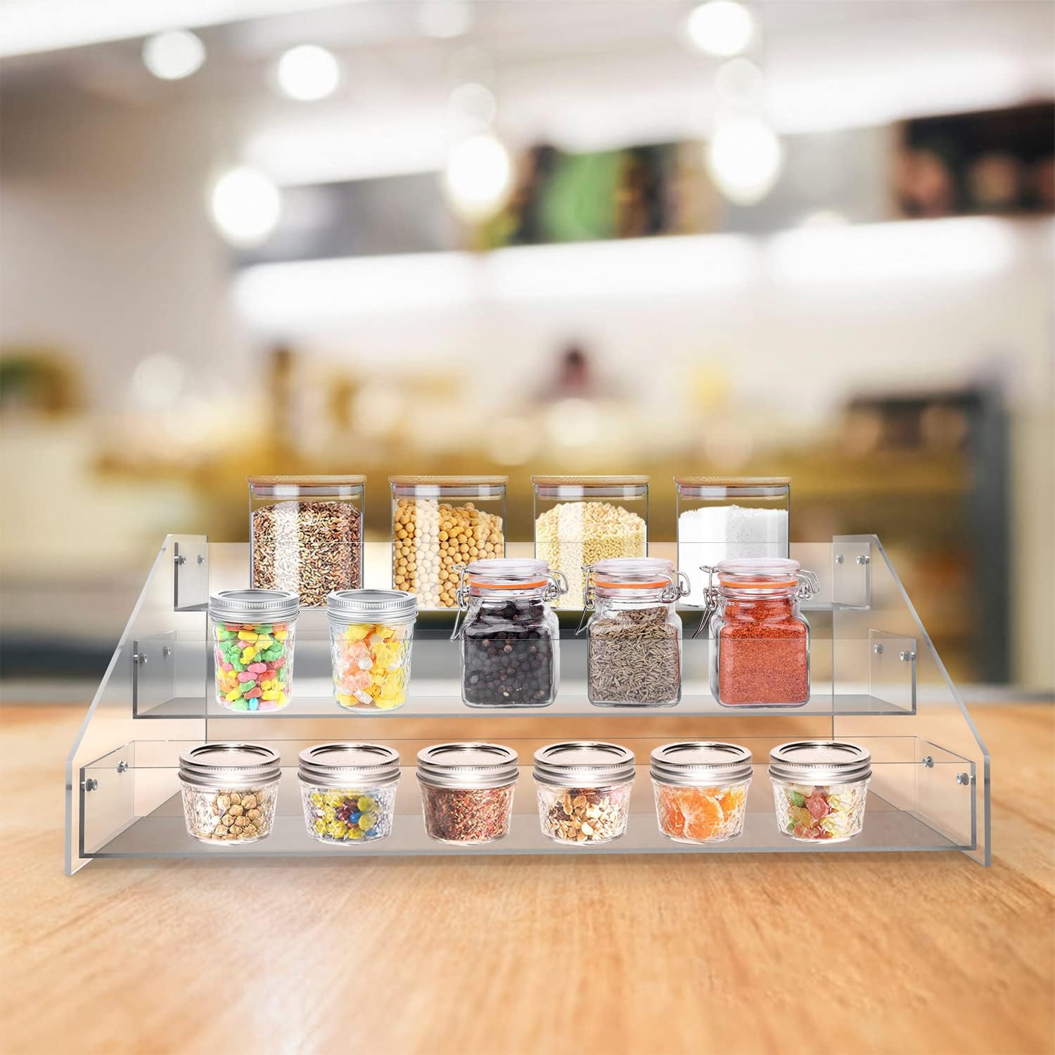FANASSYY Clear Acrylic Spice Rack Organizer for Cabinet Tiered Spice Rack Storage Countertop Pantry Seasoning Spice Shelf for Kitchen Vertical Shelves Organizer for Pantry (3 Tier)