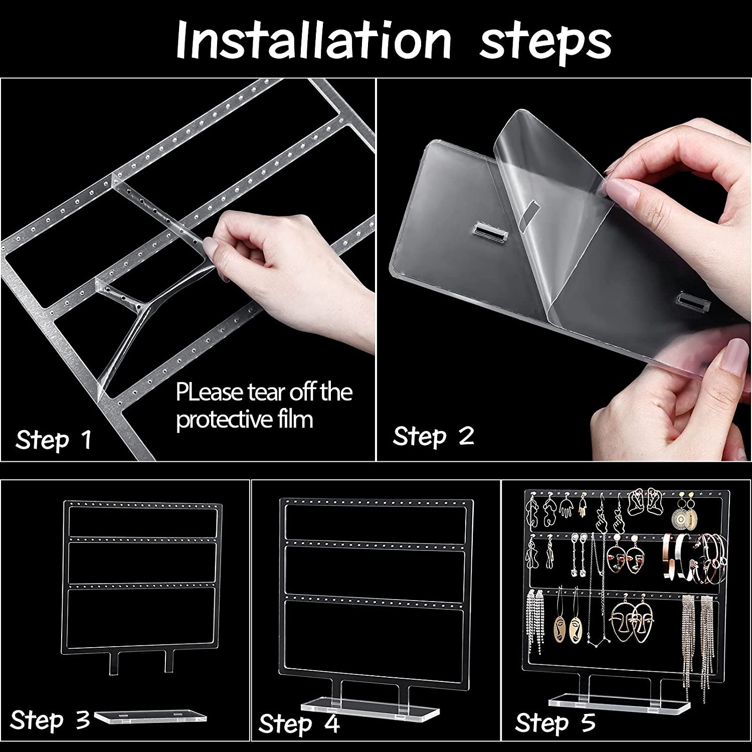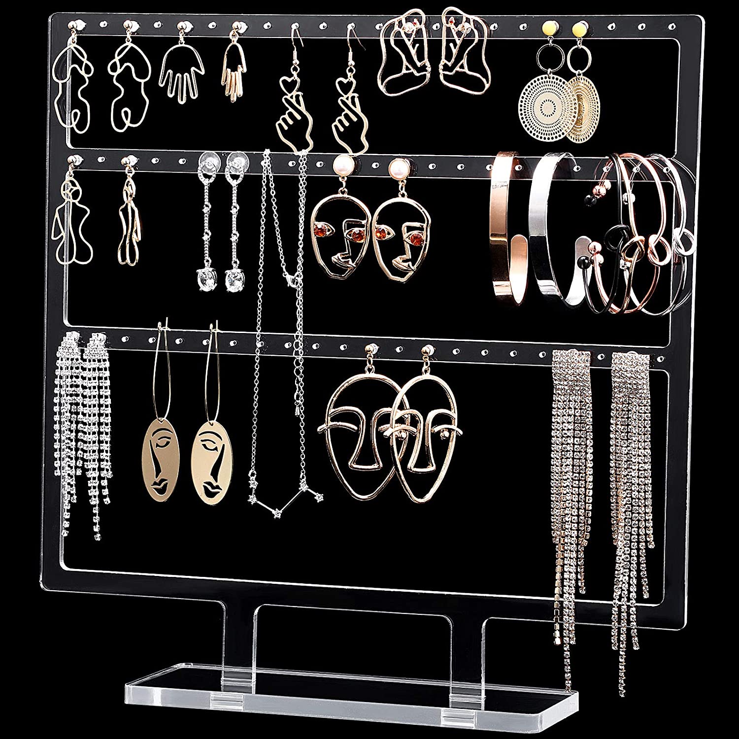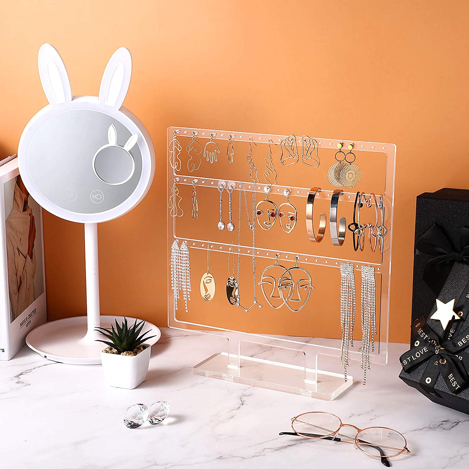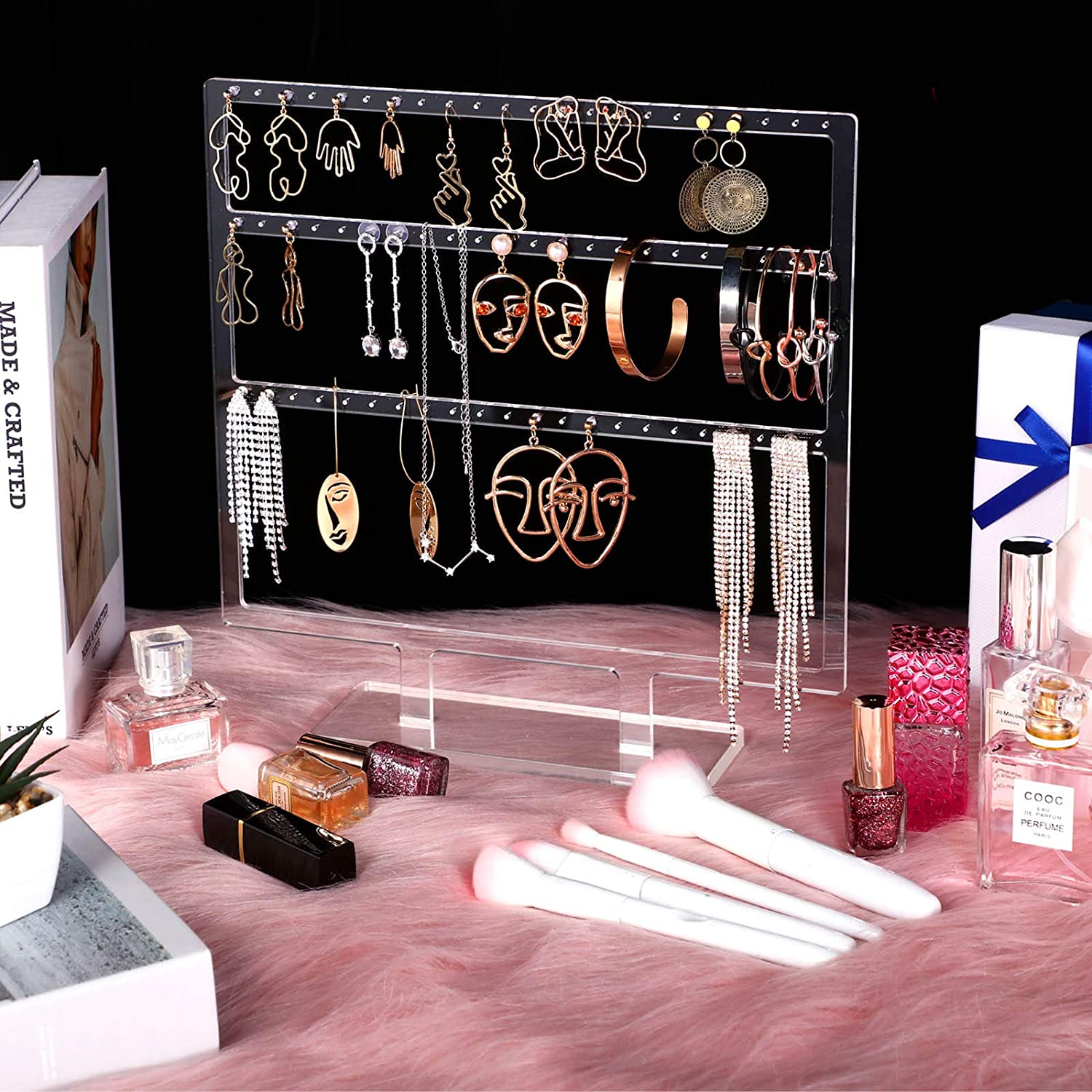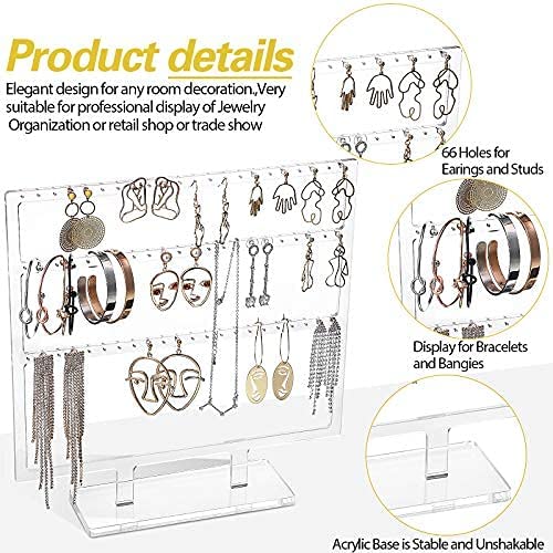 FANASSYY Clear Earring Display Stand Earrings Organizer 66 Holes 3-layered Ear Stud Holder Jewelry Display Stands