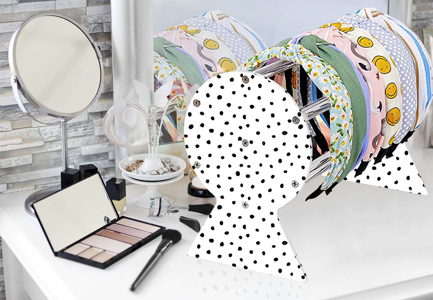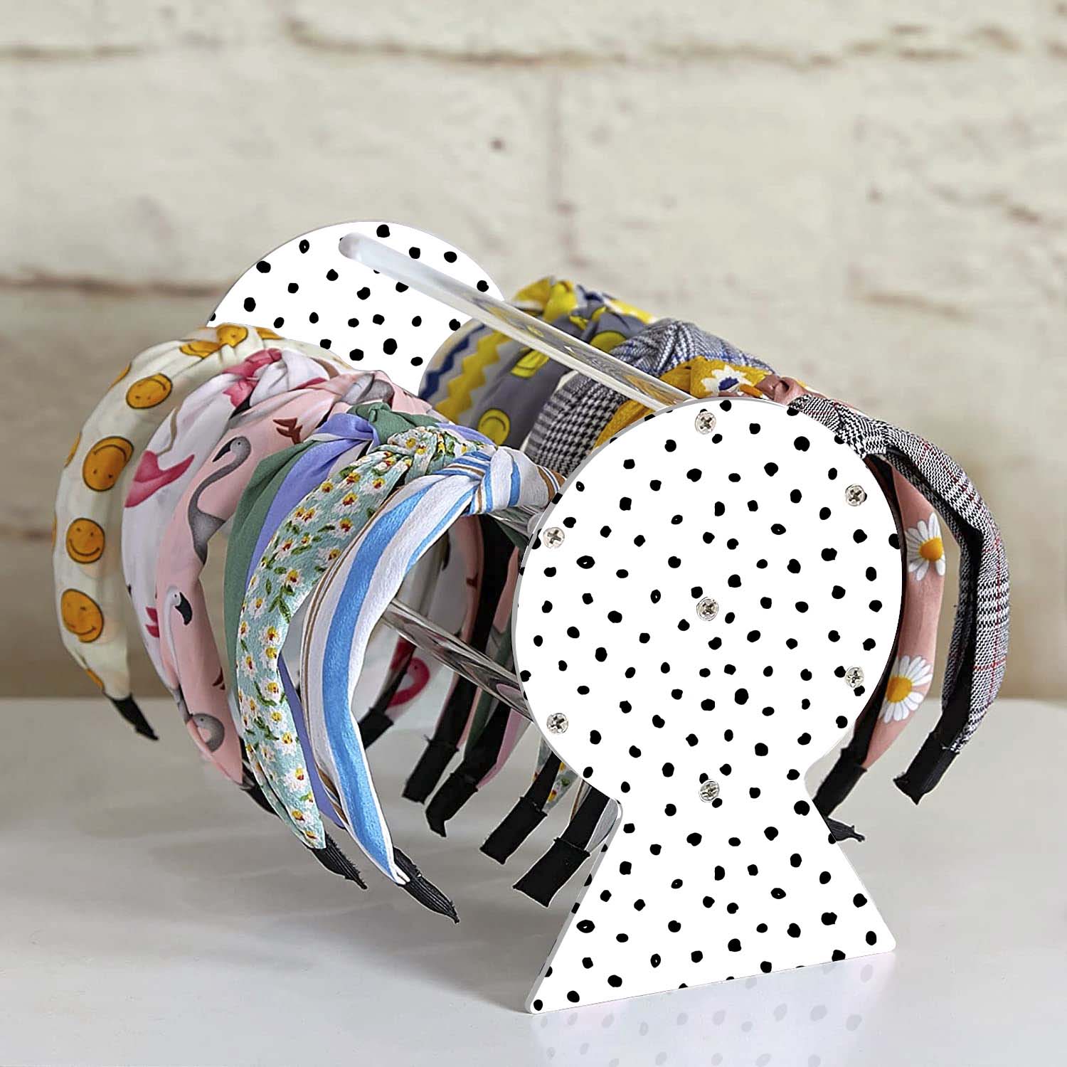 FANASSYY Headband Holder Organizer – Acrylic Storage Stand for Hair Accessories Display – Girls and Women (Design 2- Polka Dots)