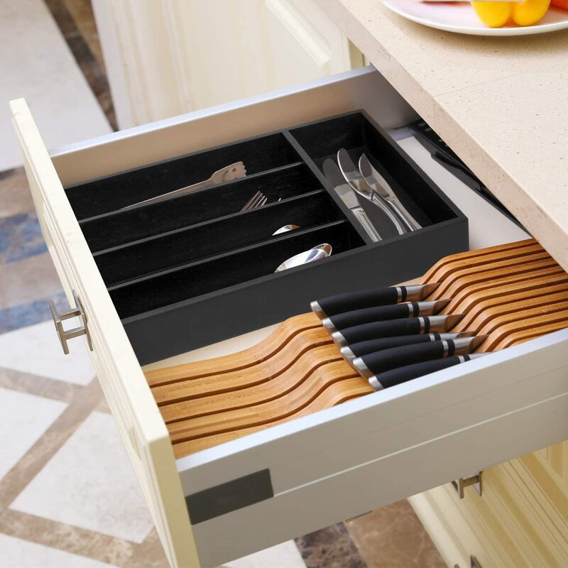FANASSYY Kitchen Utensil Holder – Clear Acrylic Countertop Crock, Large and Sturdy Cooking Caddy Organizer for Home Decor (Tray Flatware Drawer Organizer)