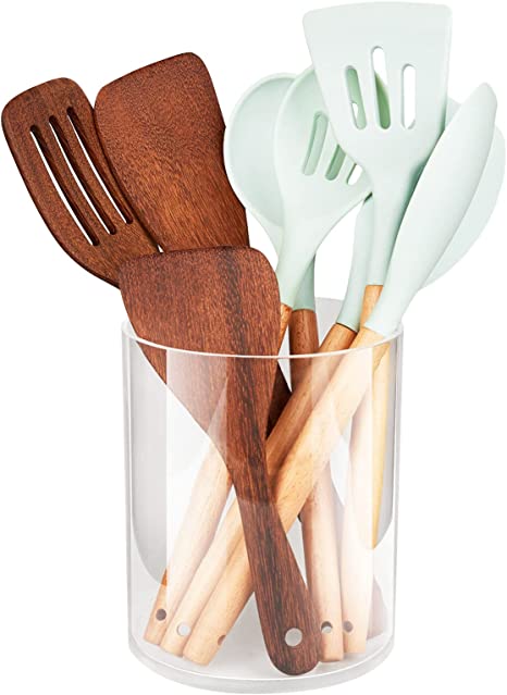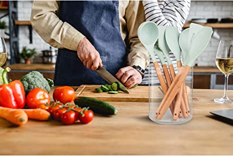 FANASSYY MULTIPURPOSE organizer Kitchen Utensil Holder for Countertop Acrylic Large Cooking Tools Storage Utensils Organizer Spoon Holder Round Caddy Crock Home Décor (Without Drainage Holes)
