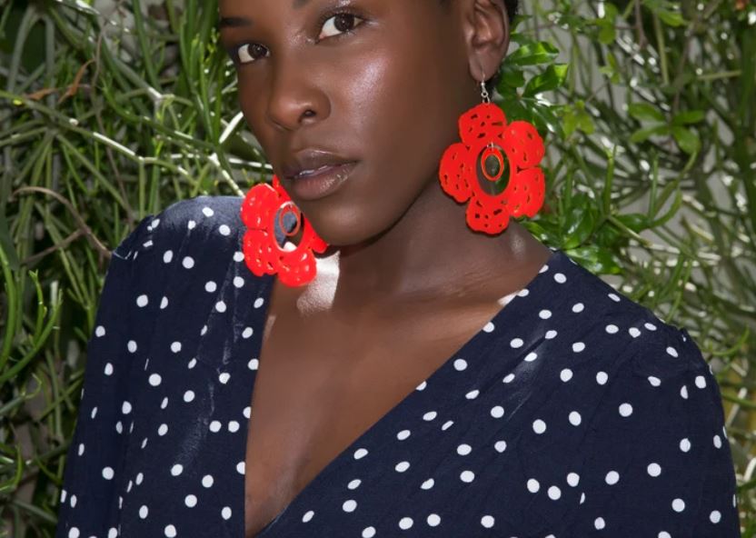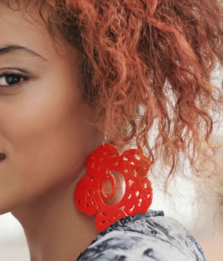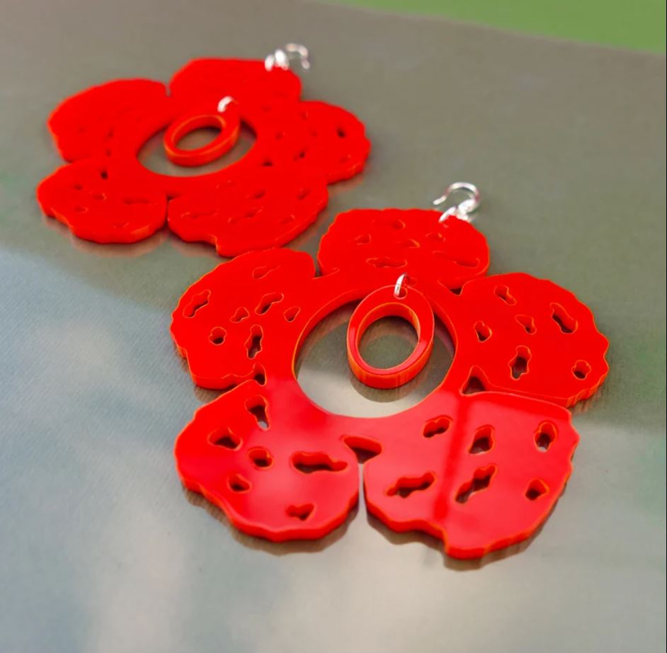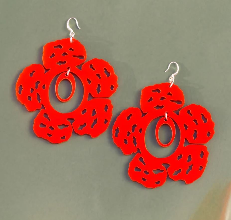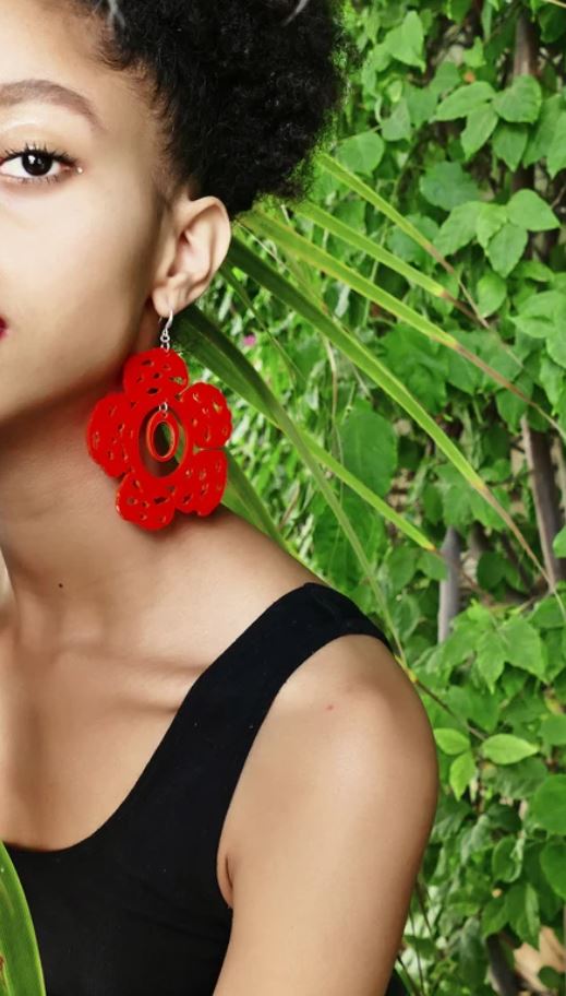 Fanassyy Statement Red Flower Oversize Earrings Dangling Hoop Acrylic Set for Women | Gifts for Women and Girl’s | Casual Look | Traditional